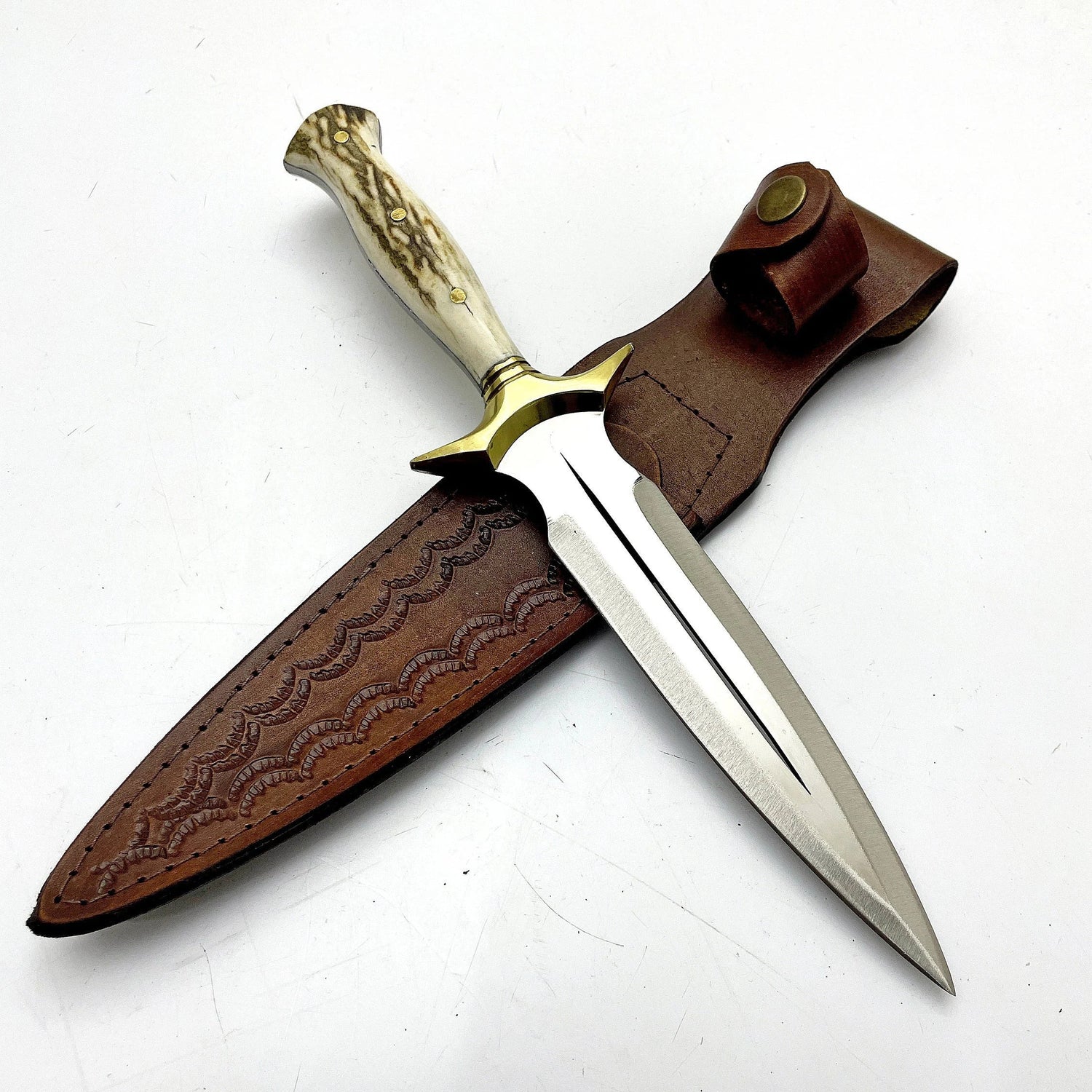 • Handgemachtes Hirschgeweih Dolchmesser Personalisiert mit Lederscheide