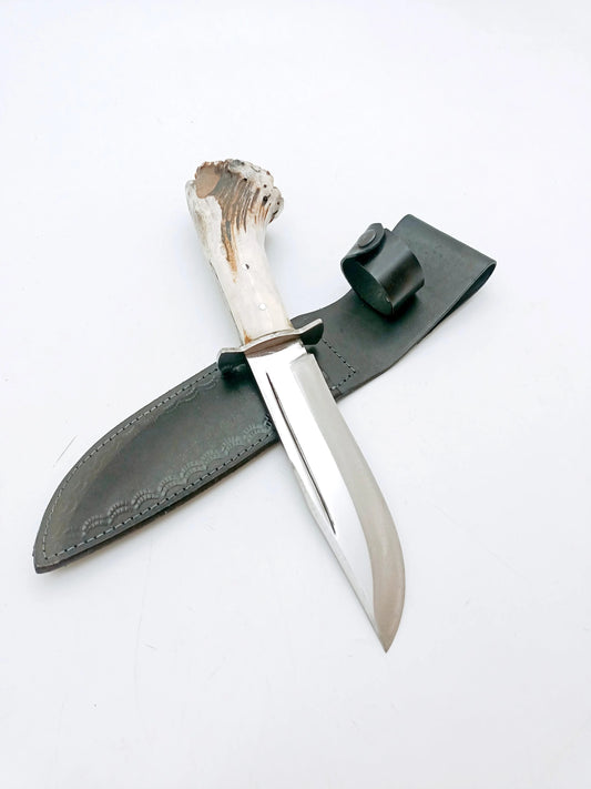 Handgemachtes Survival Jagdmesser mit Hirschgeweih Griff und Lederscheide