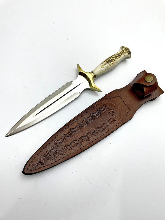 Handgemachtes Hirschgeweih Dolchmesser Personalisiert mit Lederscheide