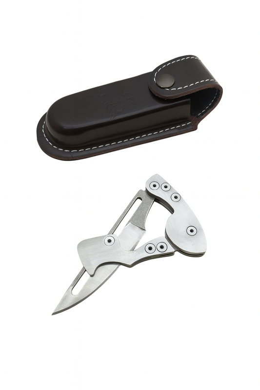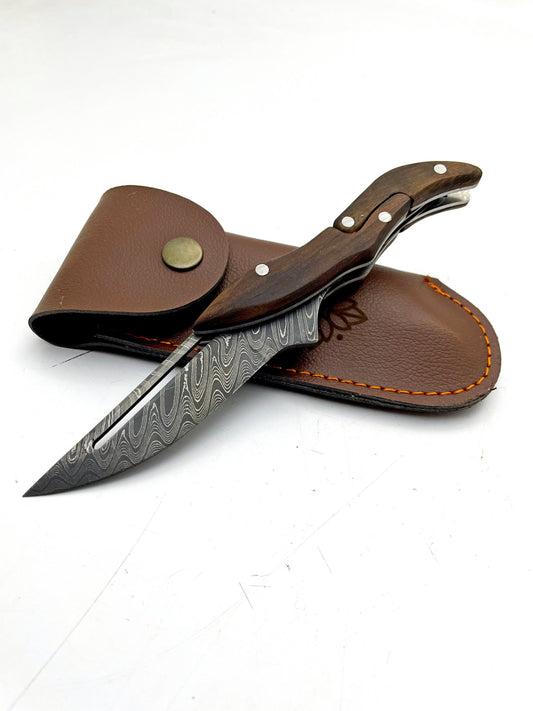 Personalisiertes Damaststahl Klappmesser mit Lederscheide