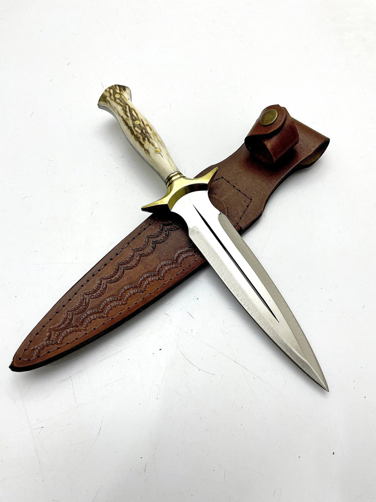 Hirschgeweih Griff Dolchmesser mit Lederscheide