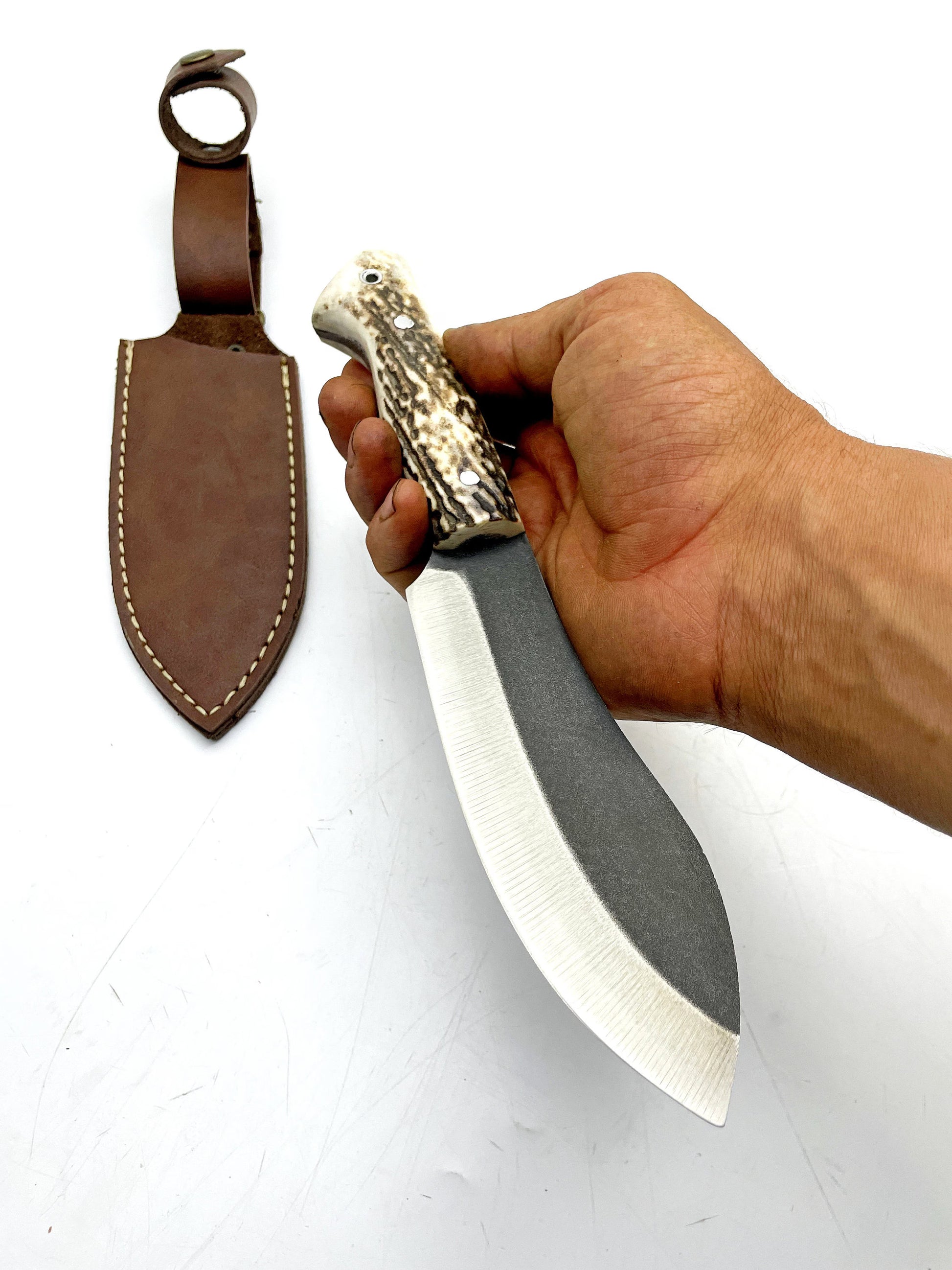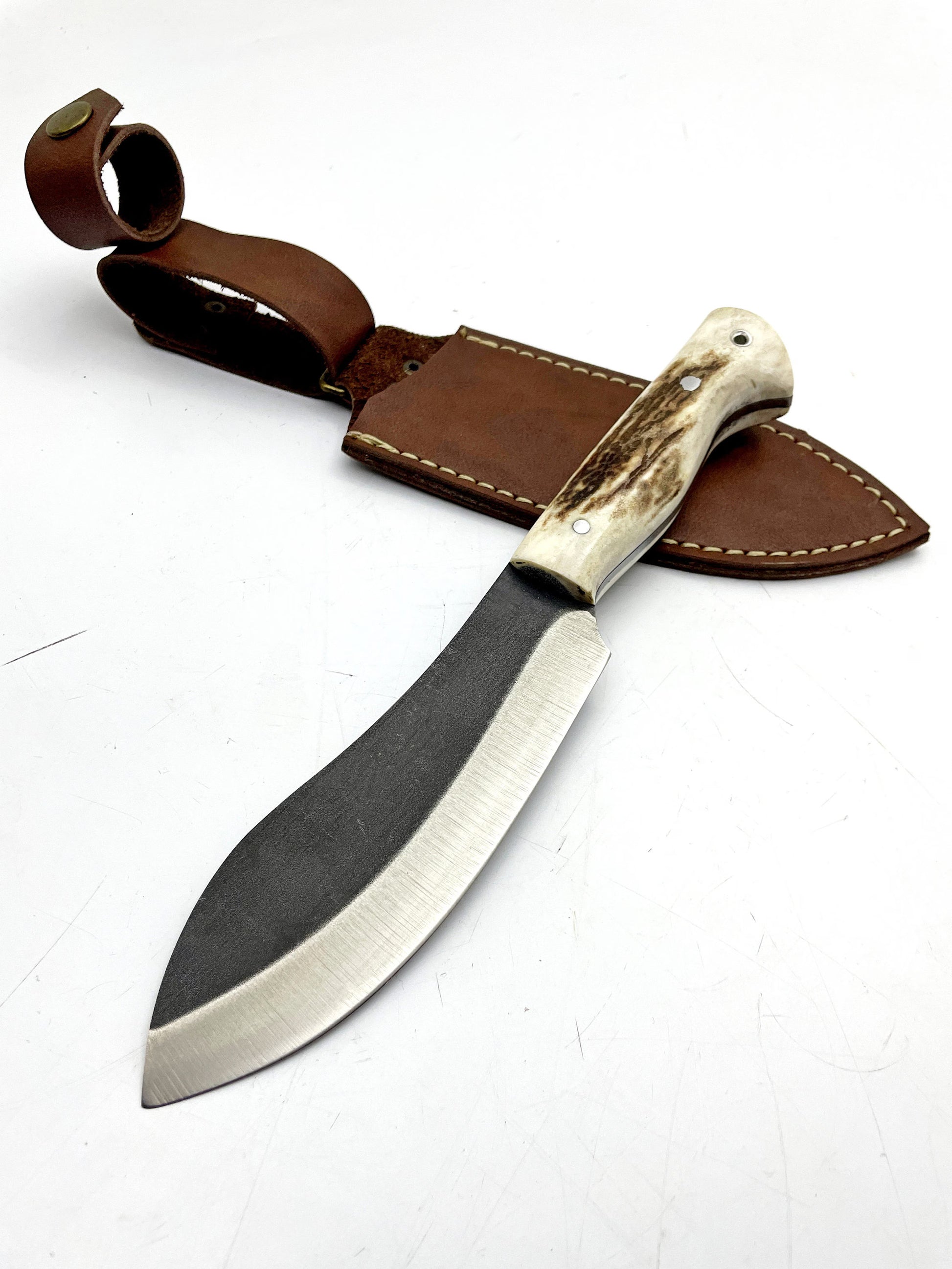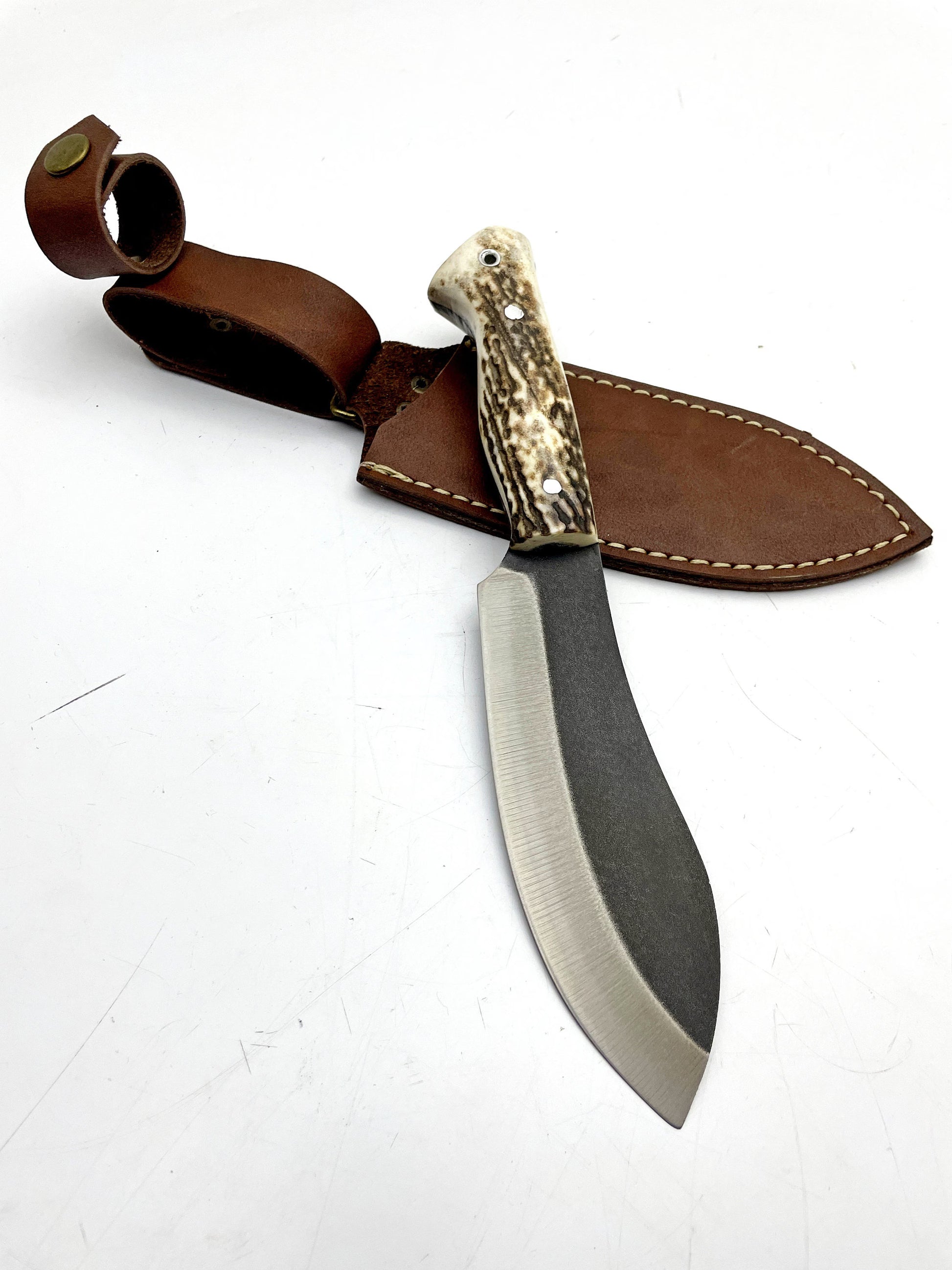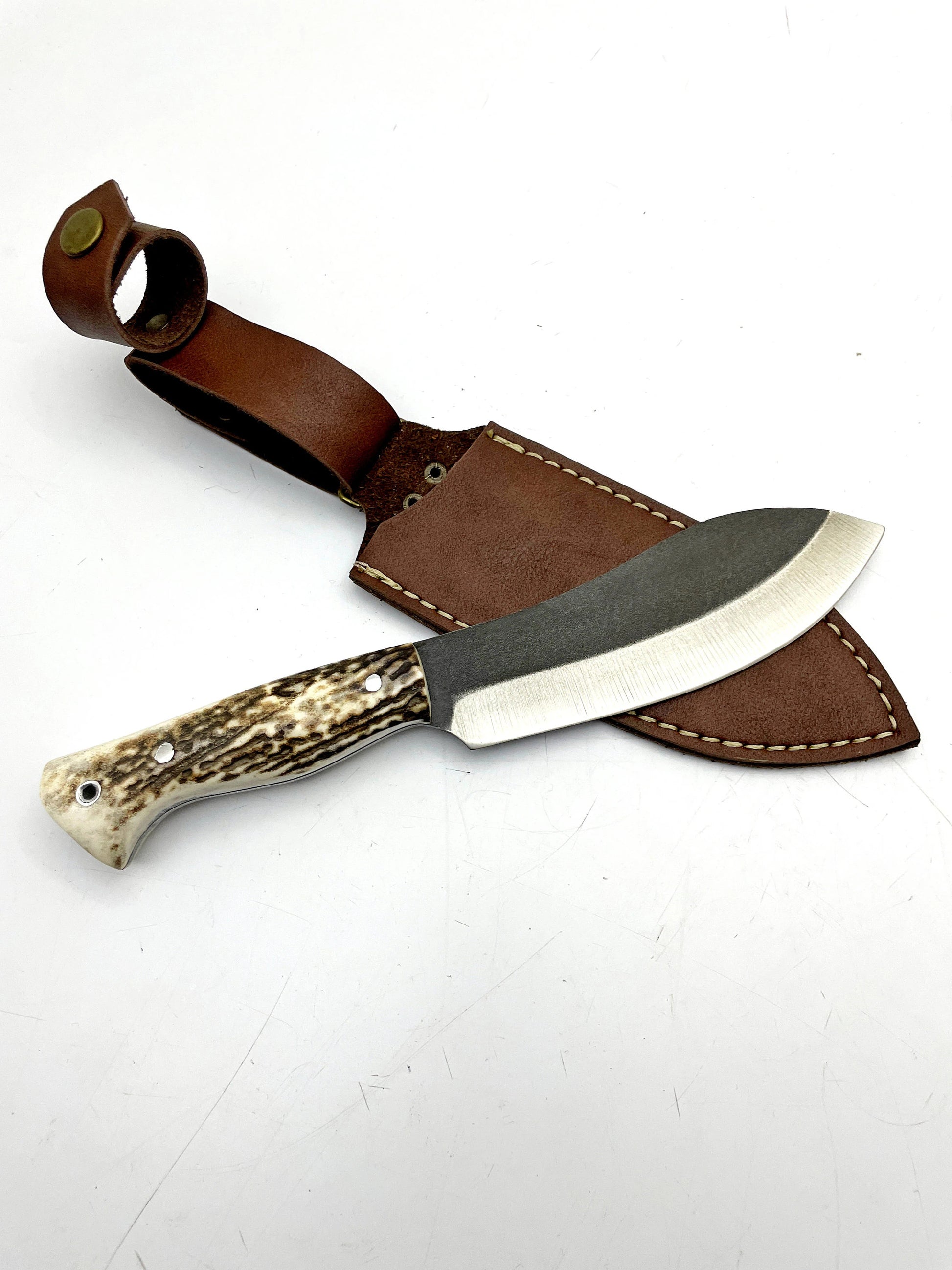 🔥 Nessmuk Jagdmesser – Handgefertigt & personalisiert | Hirschhorn-Griff | Outdoor-, Camping mit Lederscheide