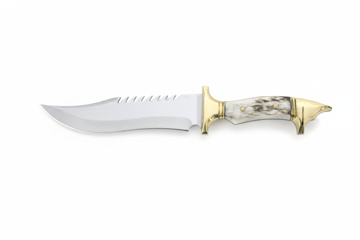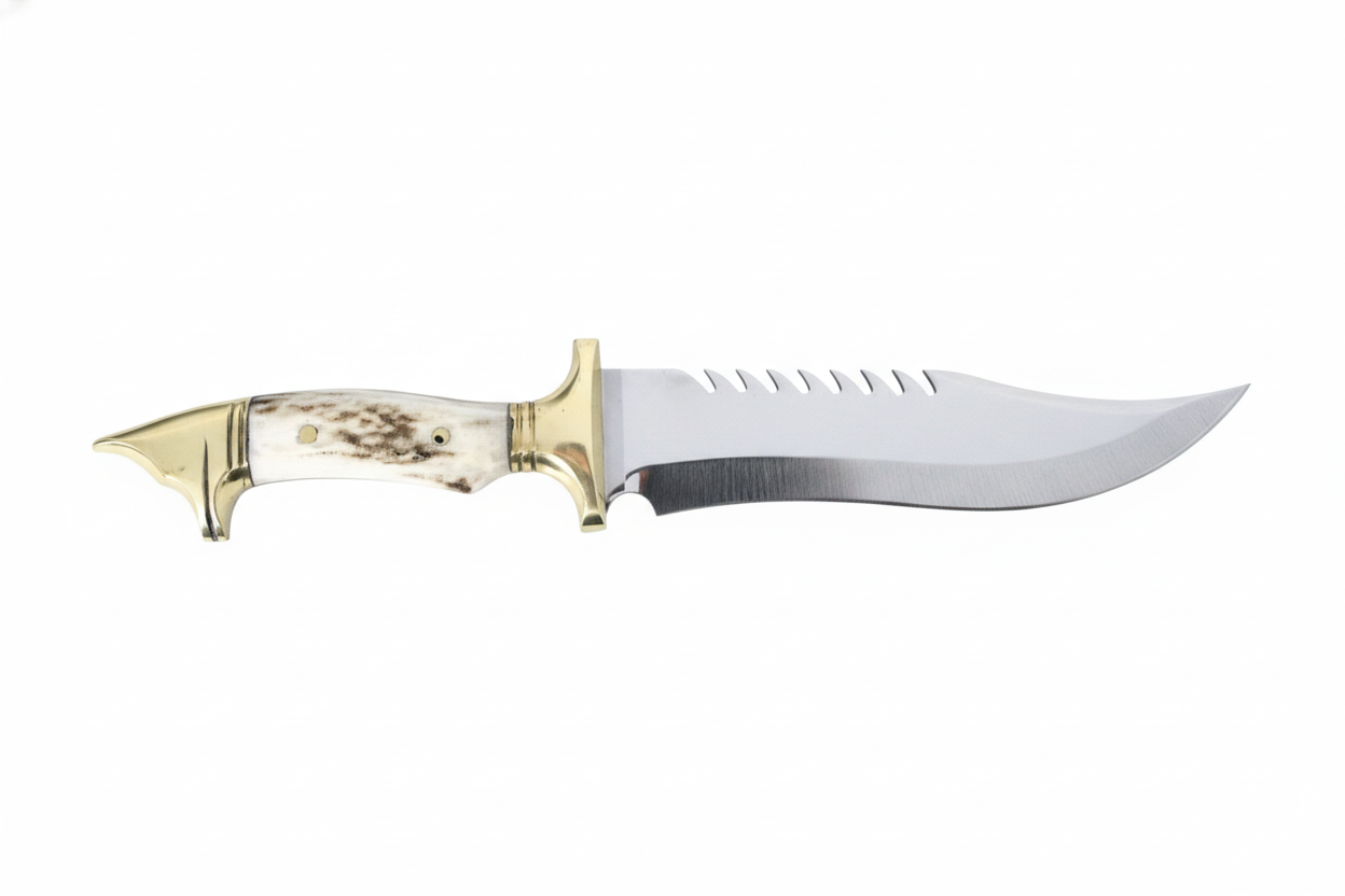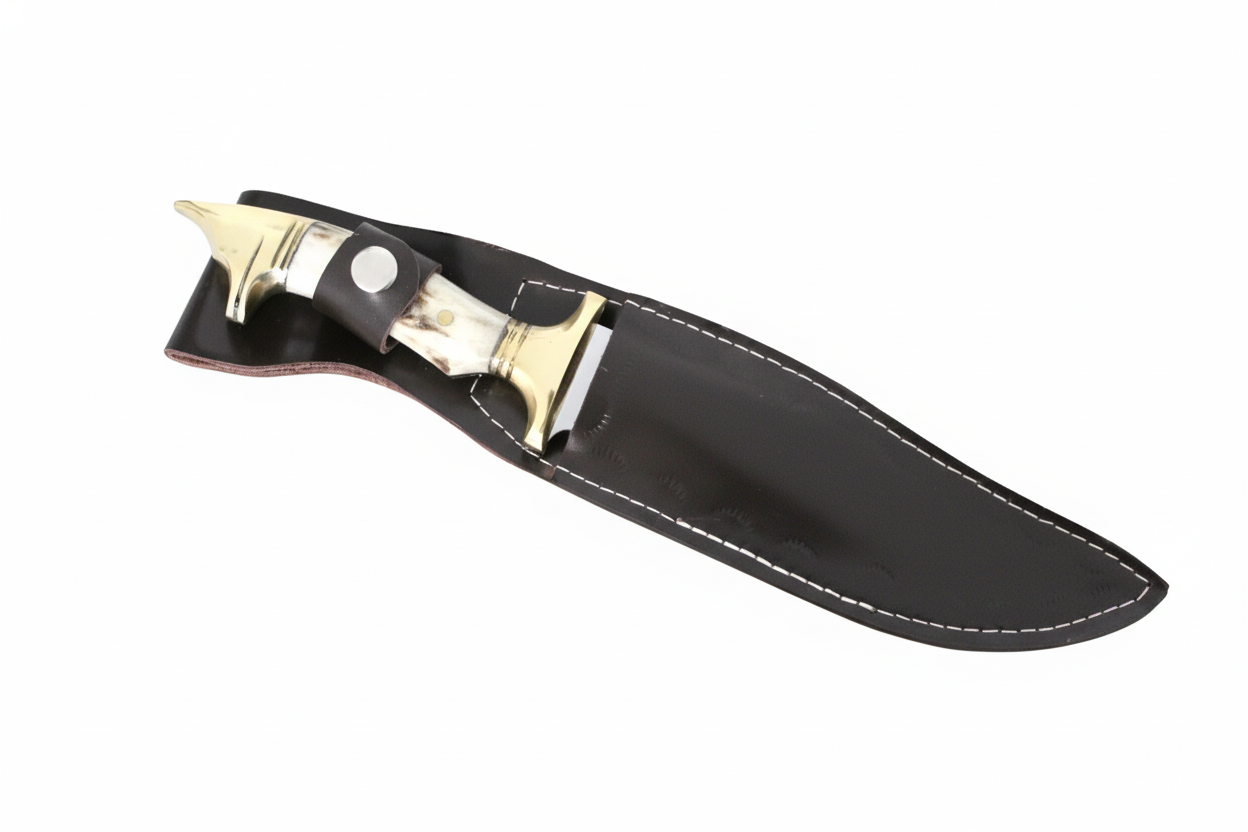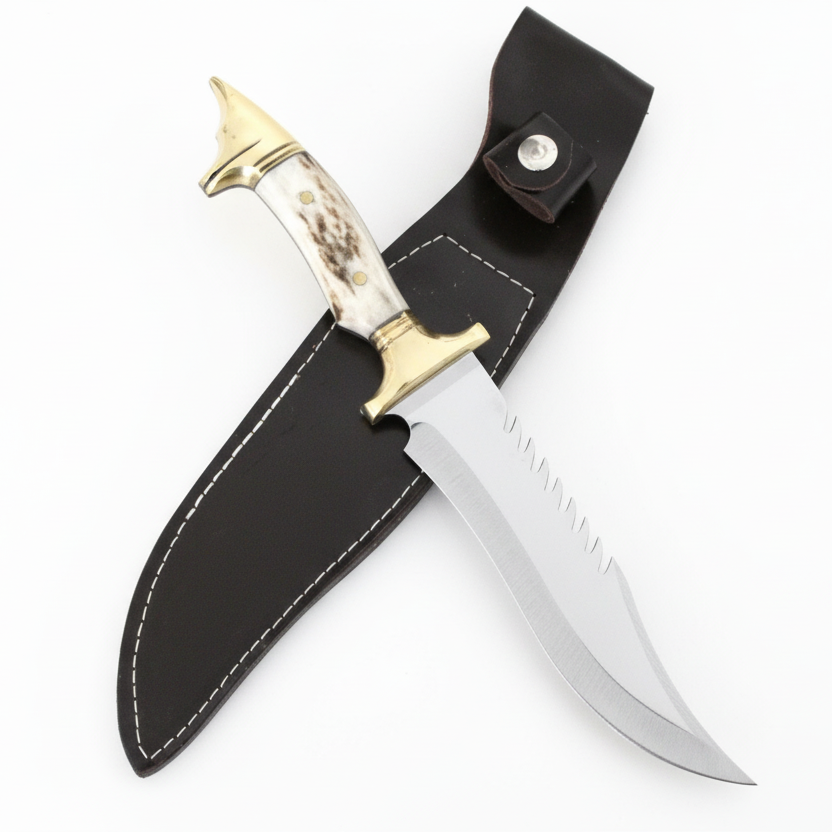 Handgefertigte Hirschgeweih Wolfkopf Messing Jagdmesser