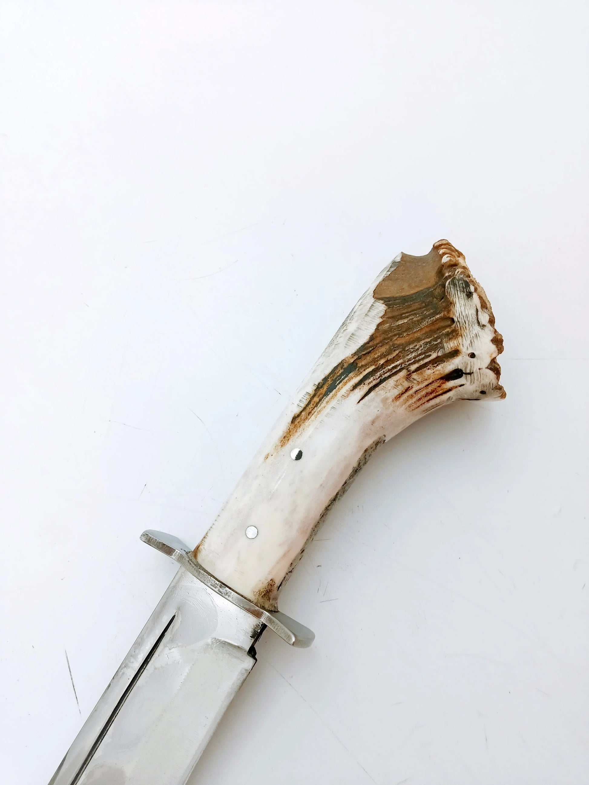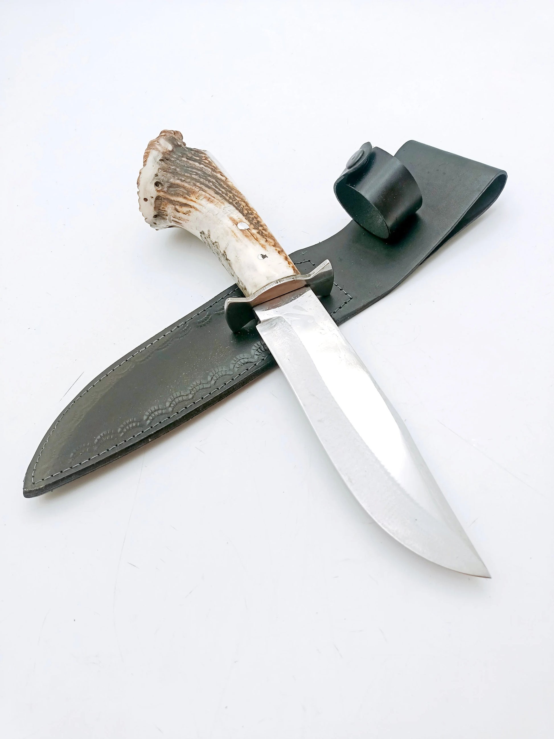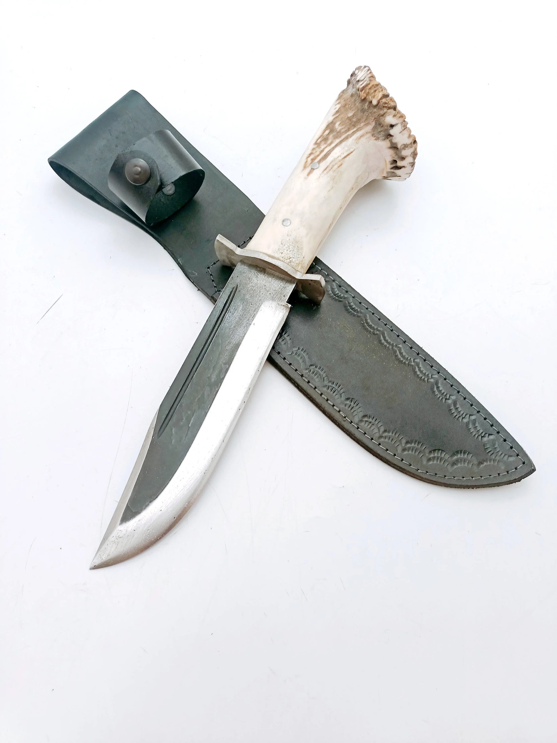 Handgemachtes Survival Jagdmesser mit Hirschgeweih Griff und Lederscheide