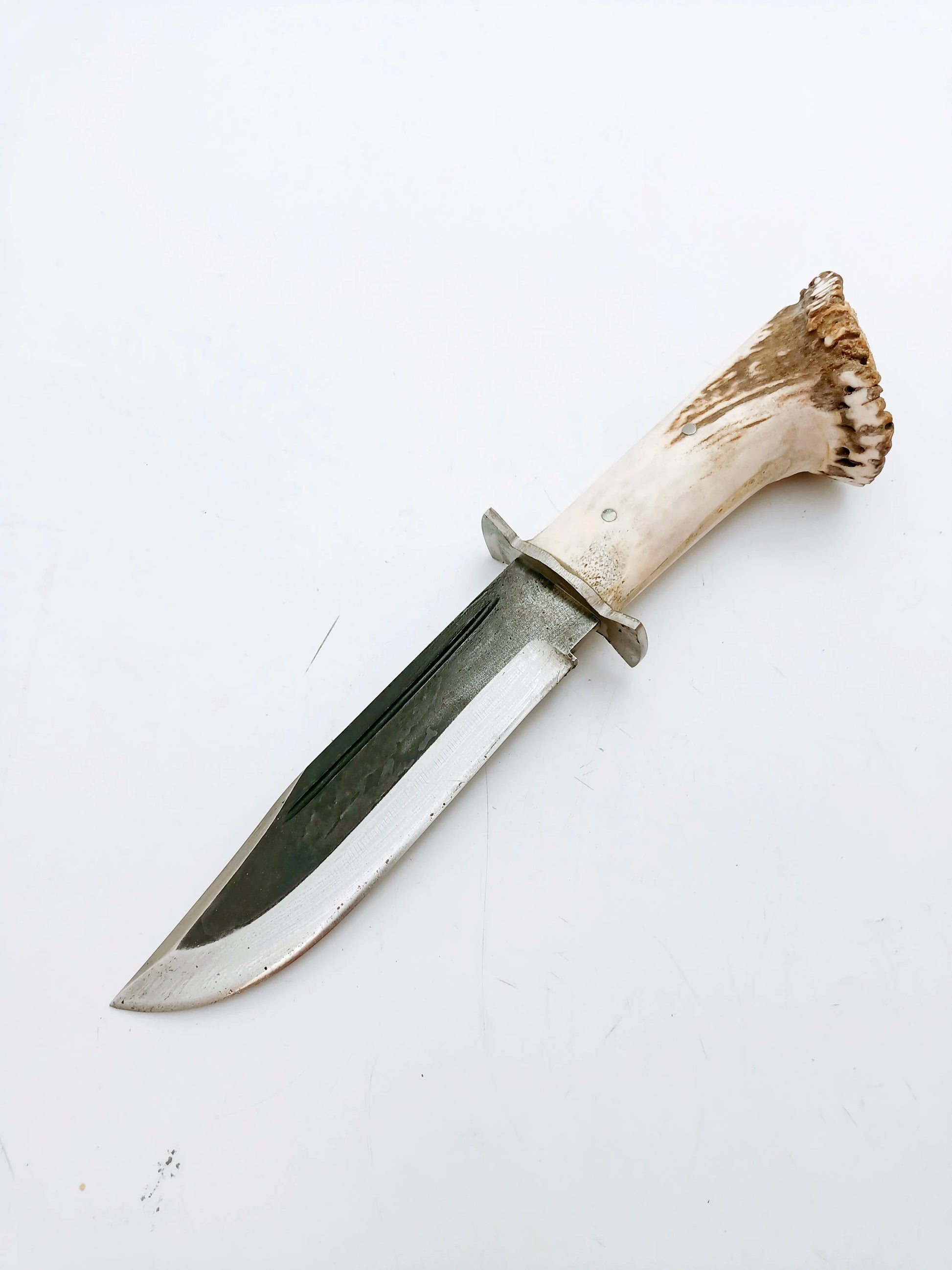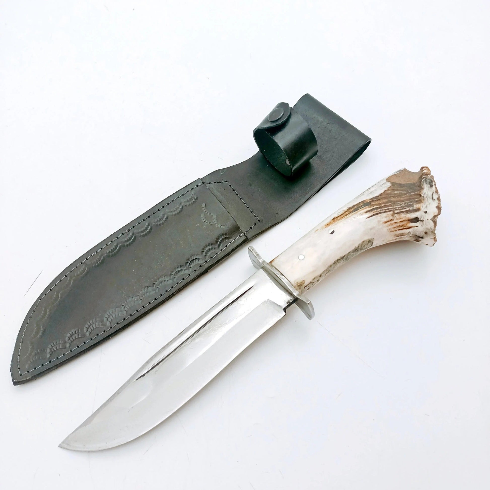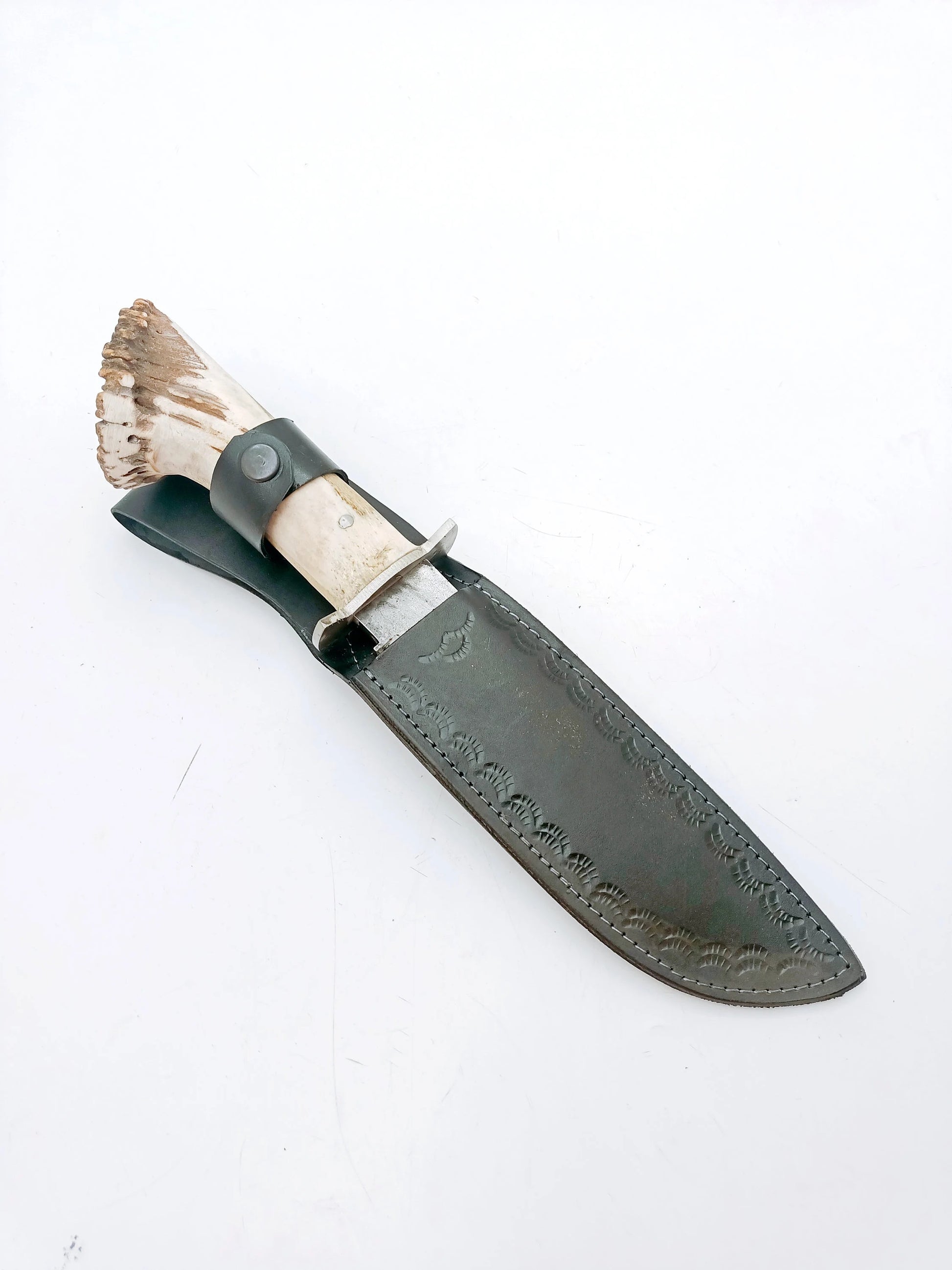 Handgemachtes Survival Jagdmesser mit Hirschgeweih Griff und Lederscheide
