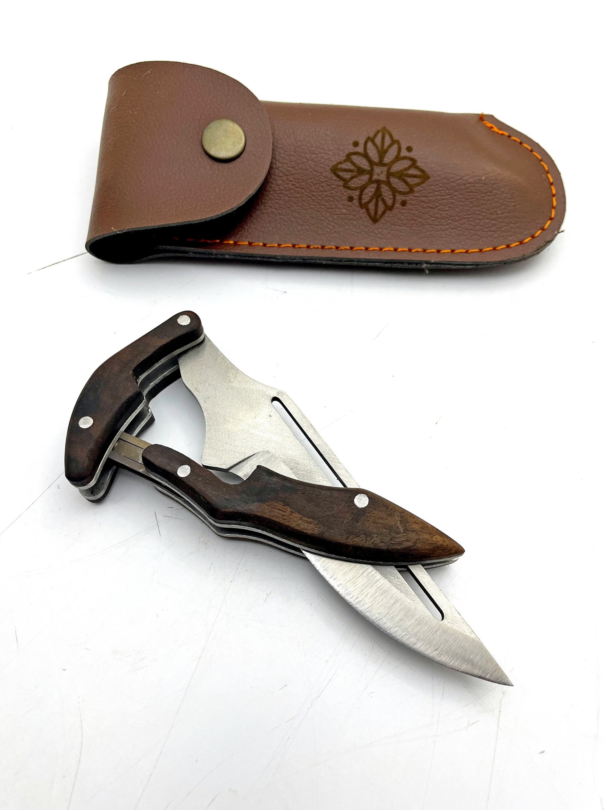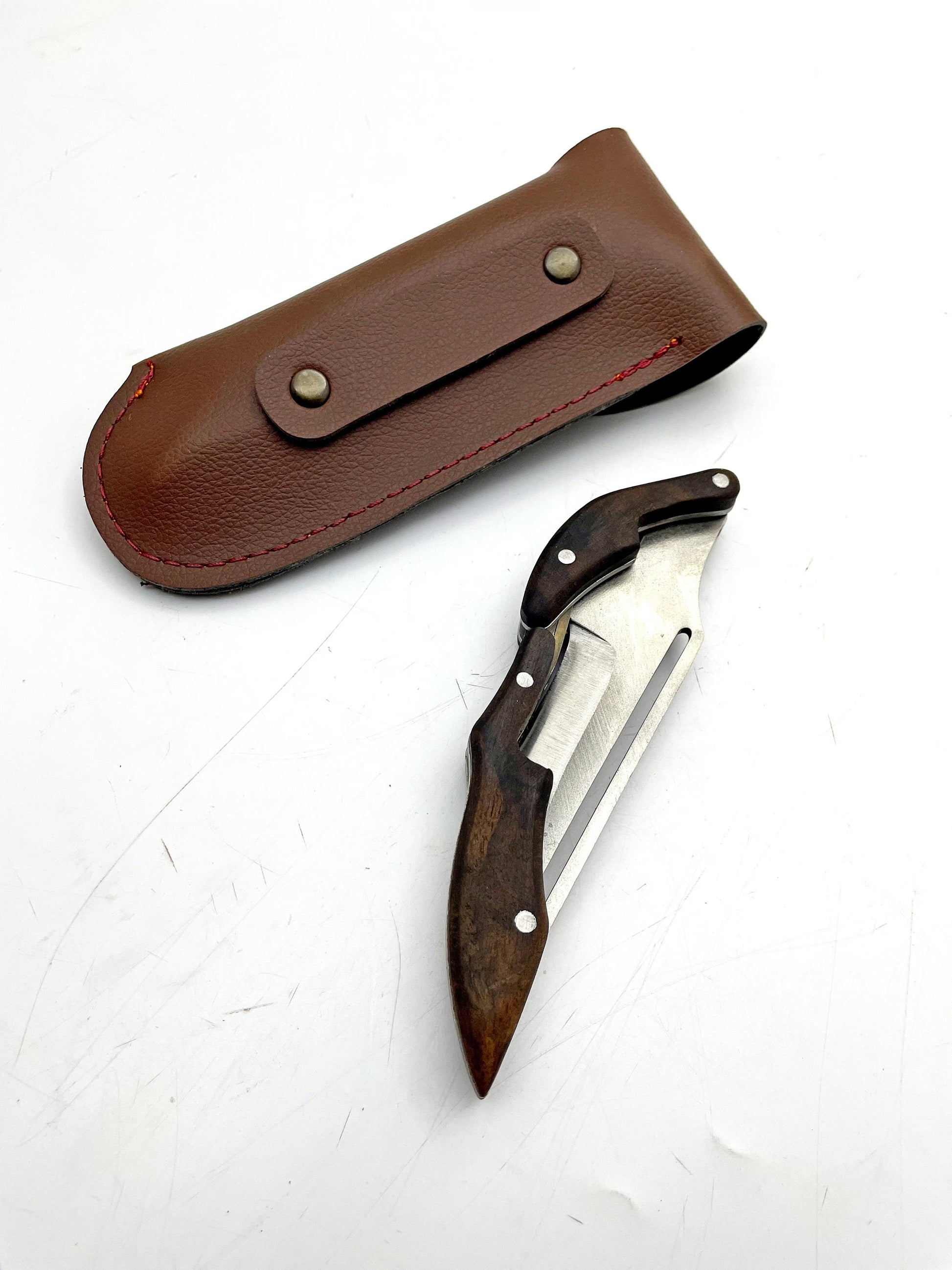 Personalisiertes Handgemachtes Klappmesser mit Lederscheide