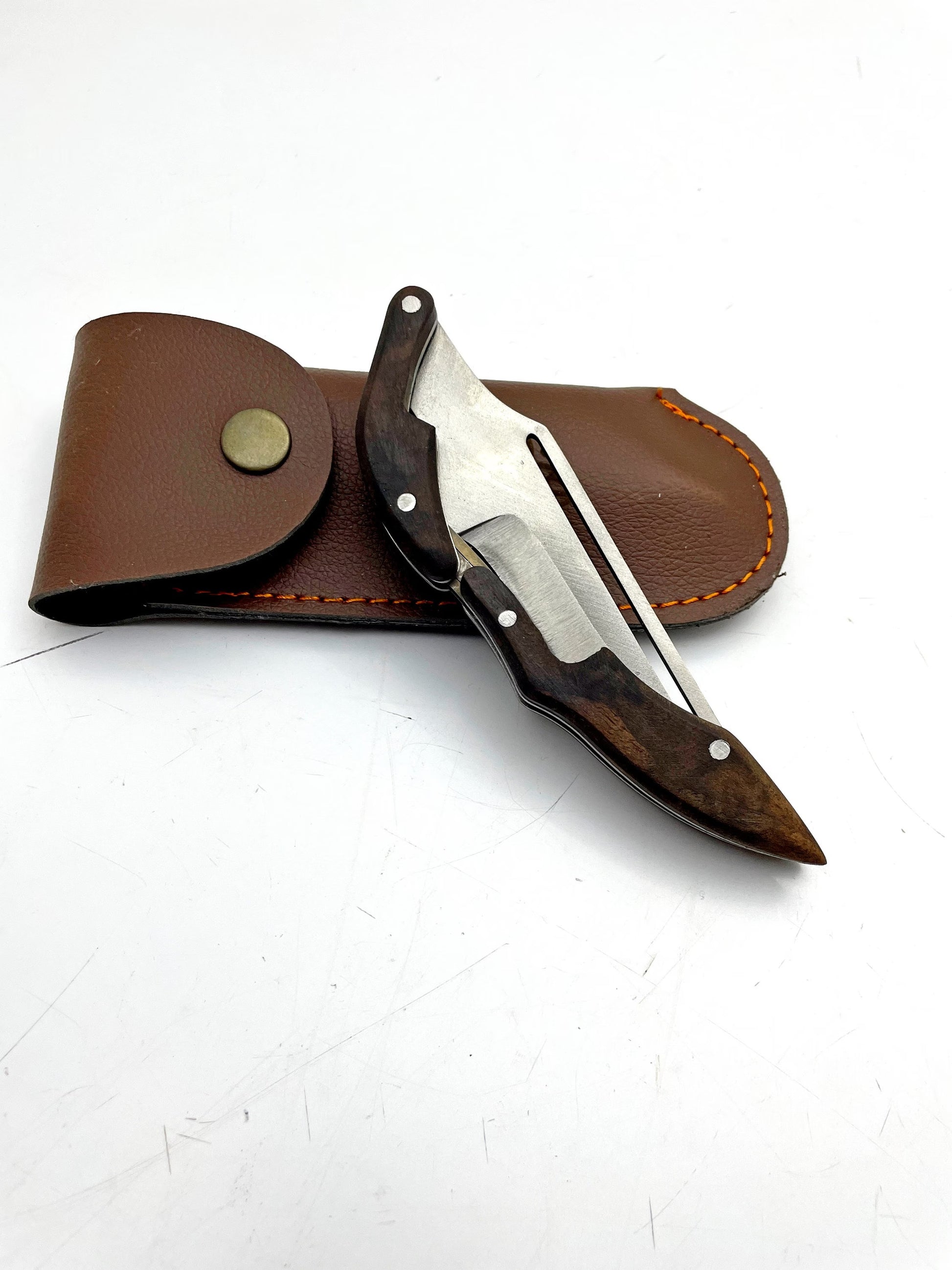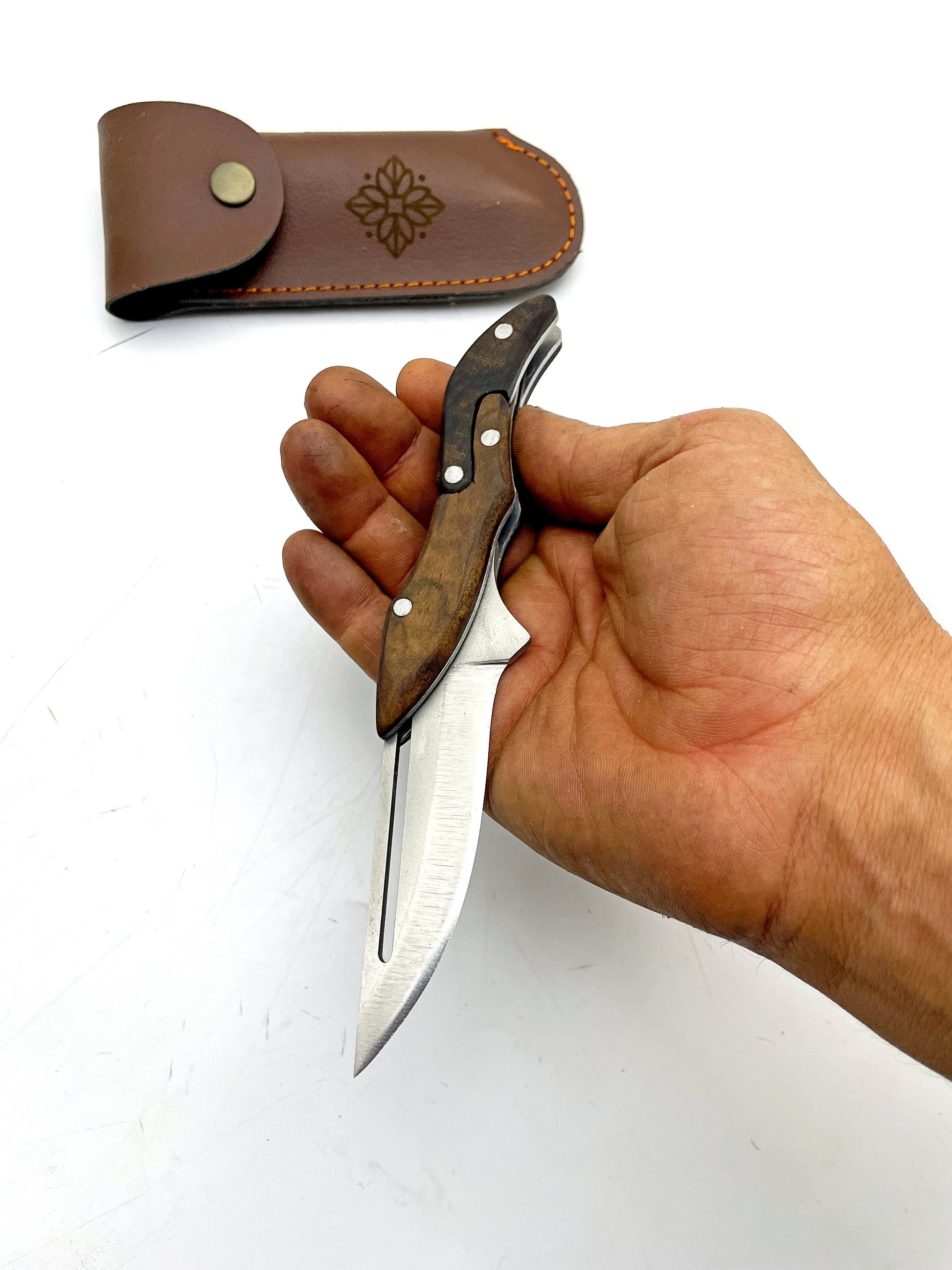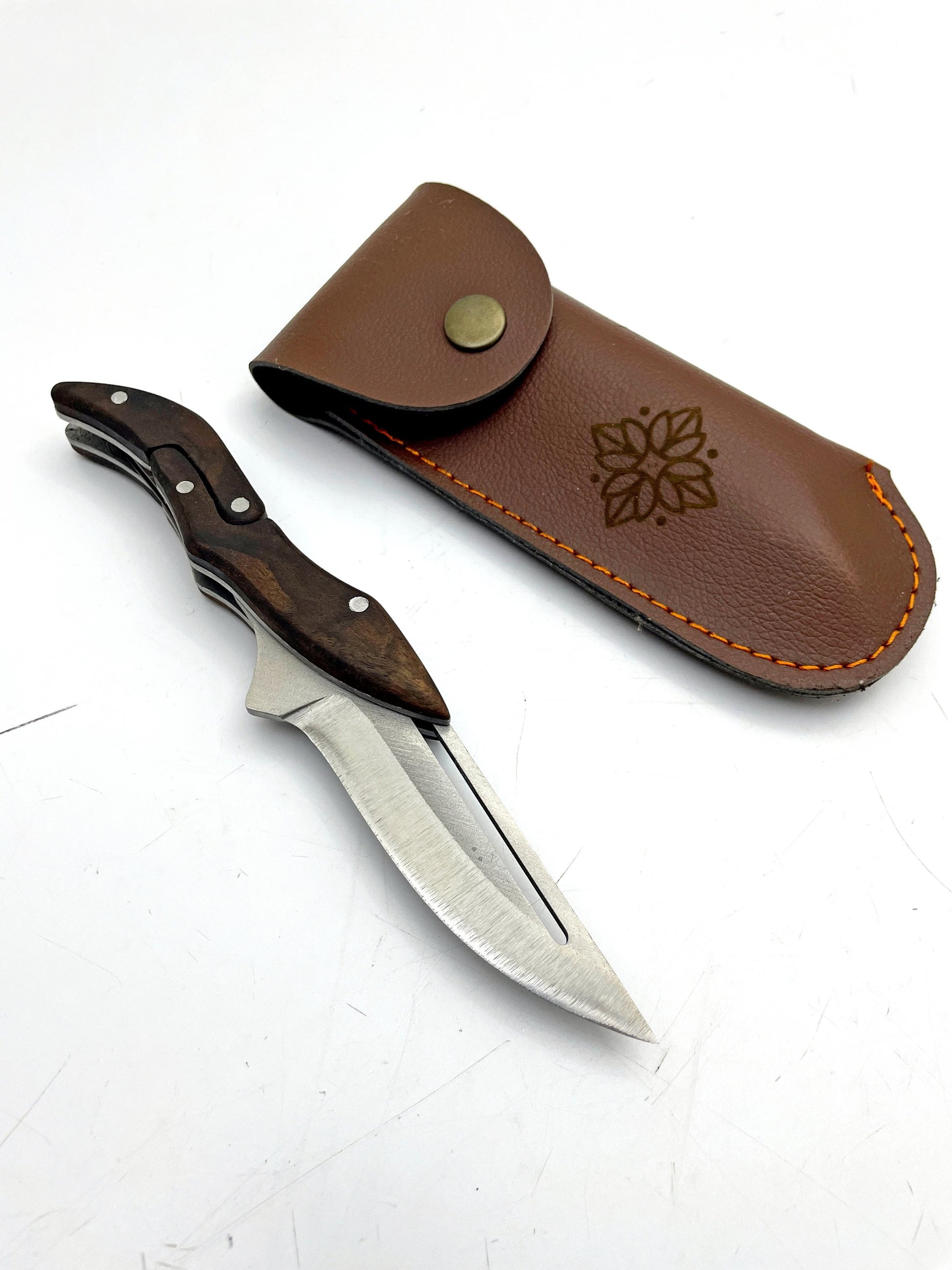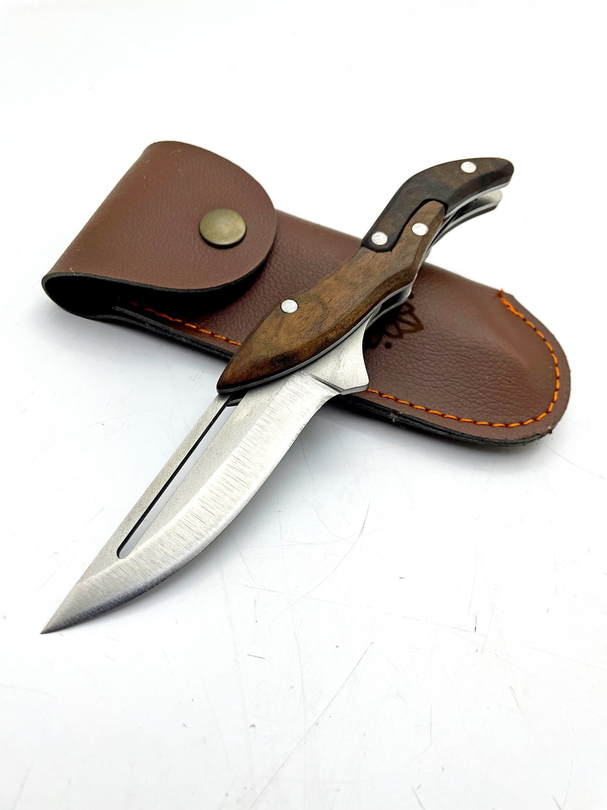 "Super fast shipping and the quality of the Personalisiertes Handgemachtes Klappmesser mit Lederscheide is great!"